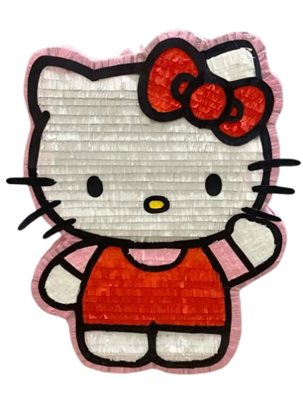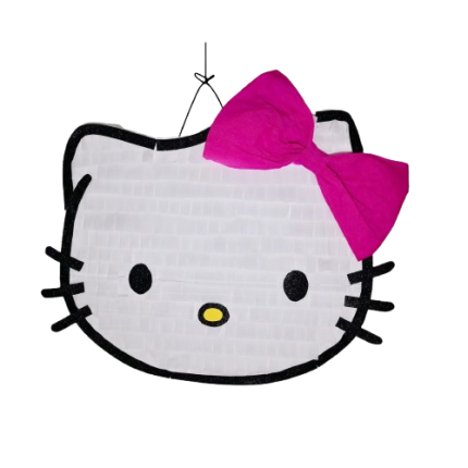 Χειροποίητη Πινιάτα Hello Kitty που συνδυάζει όμορφη διχρωμία και πρωτότυπο σχήμα για να γίνει το πάρτυ σας ακόμα πιο εντυπωσιακό, με χωρητικότητα γεμίσματος ανεξάρτητη από τον αριθμό των παιδιών.