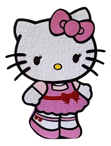 Χειροποίητη Πινιάτα Hello Kitty σε άσπρο φόντο και με την εικόνα της διάσημης γάτας να σας συνοδεύει στο πάρτυ σας ευχάριστα, με χωρητικότητα γεμίσματος ανεξάρτητη από τον αριθμό των παιδιών.