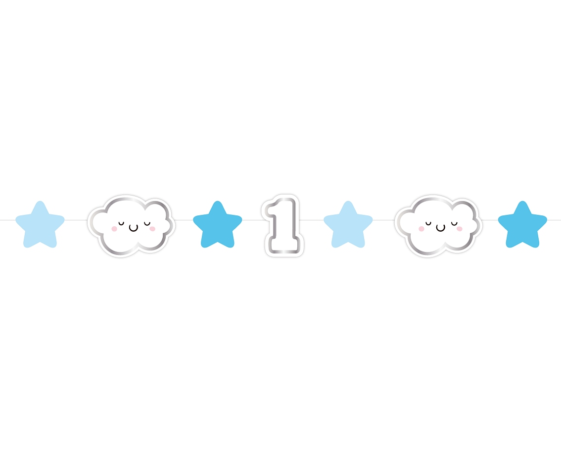 Γιρλάντα 1st birthday με συννεφάκια και αστεράκια, για να διακοσμήσετε το πάρτυ των πρώτων γενεθλίων του μικρού σας!