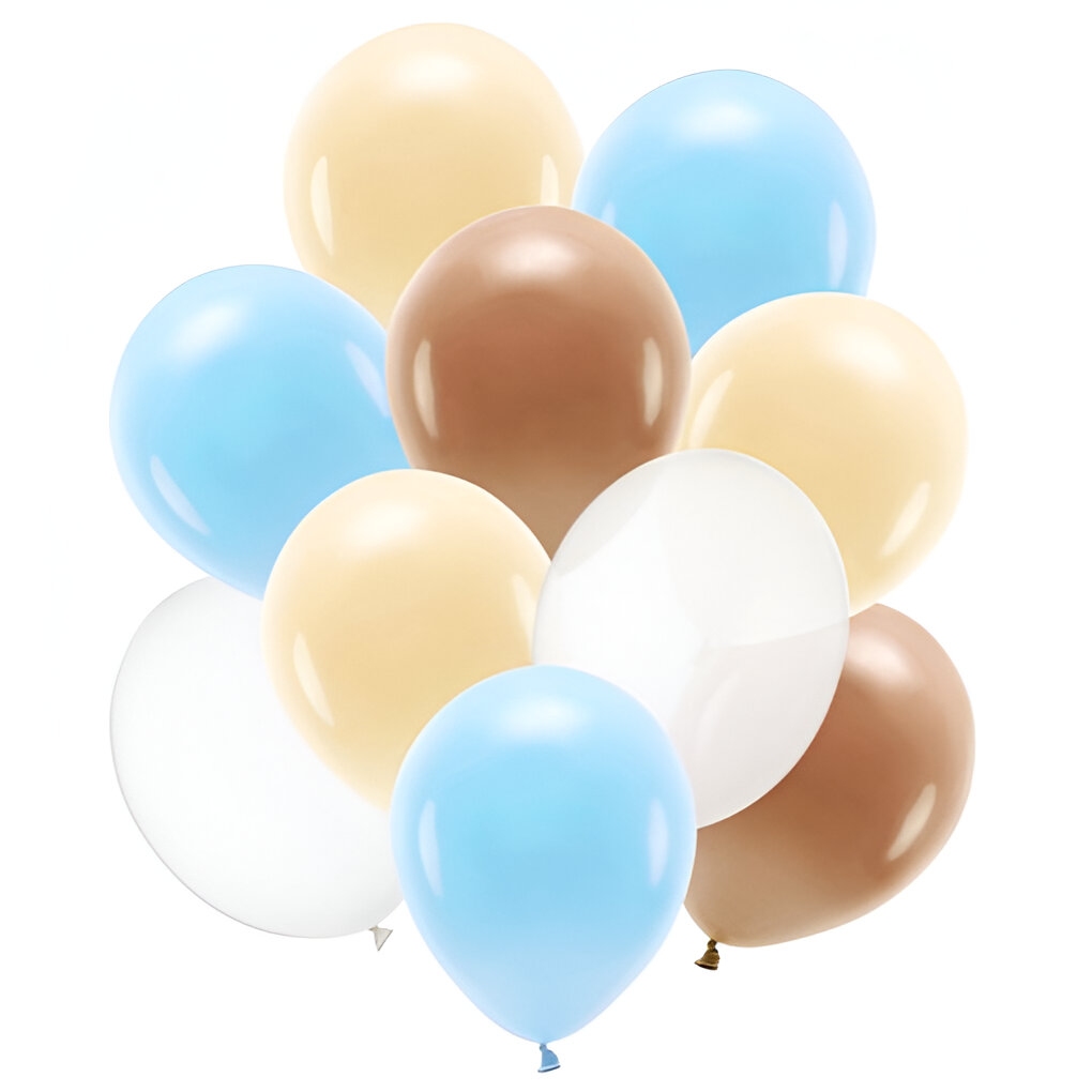 • Περιλαμβάνονται 10 latex μπαλόνια: 2 x παστέλ chocolate brown, 3 x παστέλ sky blue, 3 x παστέλ ροδακινί ανοιχτό, 2 x  διάφανα)