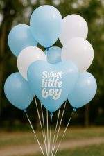 Γαλάζιο μπαλόνι σε σχήμα καρδιάς με το τρυφερό μήνυμα ‘Sweet little boy’ — η ιδανική πινελιά για ένα υπέροχο μπουκέτο που θα καλωσορίσει το νέο μέλος της οικογένειας με αγάπη και στυλ.