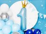 Τεράστιο γαλάζιο μπαλόνι αριθμός 1 με χρυσό στέμμα, για να διακοσμήσετε τα πρώτα γενέθλια του μικρού σας!