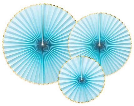 Σετ χάρτινες βεντάλιες ανοιχτό γαλάζιο (3 τεμ)